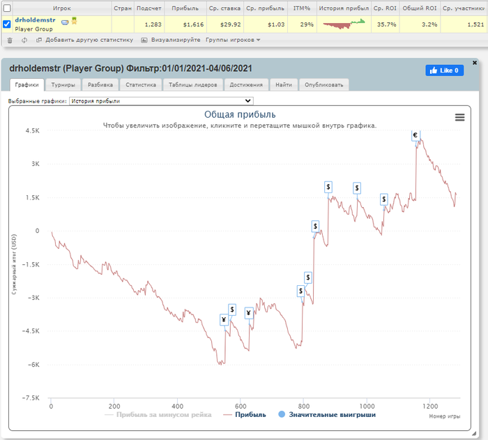 1144 турнира, ABI 28, Профит +4696