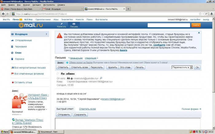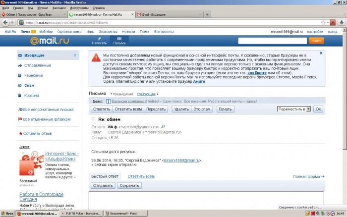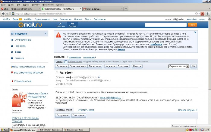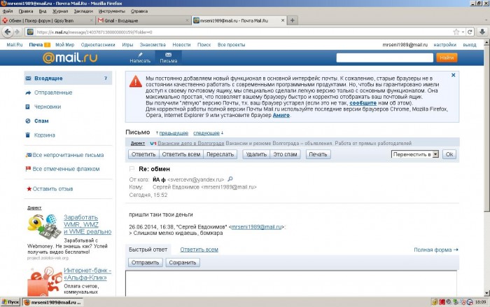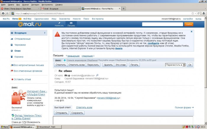 Предостерегаю, пользователь tduth https://www.gipsyteam.ru/profile/tduth мутный.При обмене имеет явные признаки мошенника , во первых имеет ВМ зарегенные буквально только что,во вторых, акк на ФТП вызывает сомнения (может карженные и тд)...привожу скрин переписки: