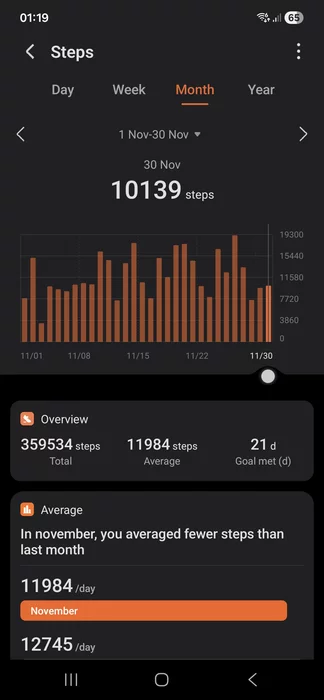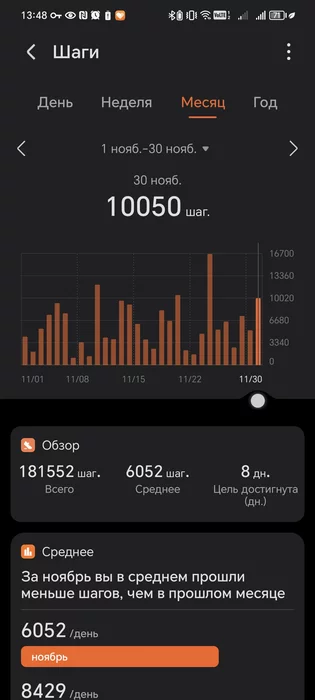 Выполнено, но один из худших месяцев по шагам в году, не знаю чем связано, то ли с осенней хандрой, то ли ещё с чем-то.