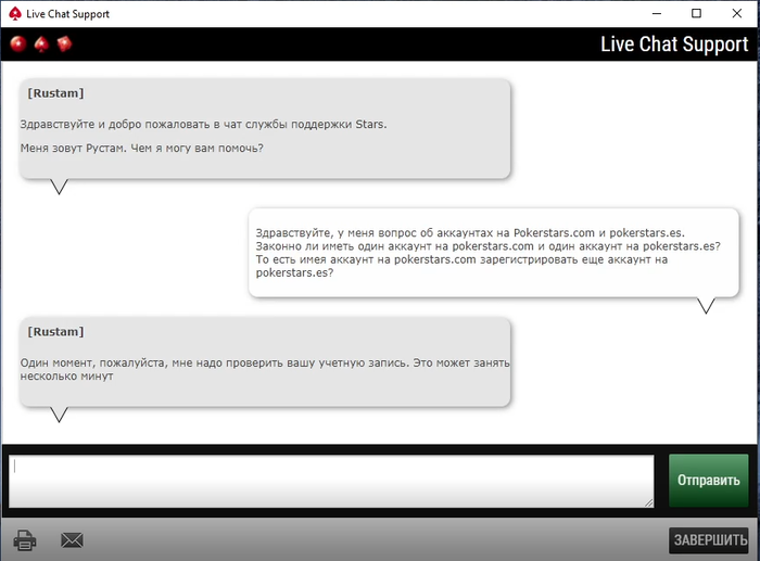 ответил им Извините я не понял, мне нельзя играть на ПС.ЕС.???да аккаунт ivani485 у меня уже давно имеется, на форуме прочитал что не запрещается иметь два аккаунта и играть сразу в двух румах. Я видимо что то не так понял?