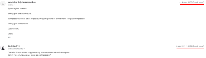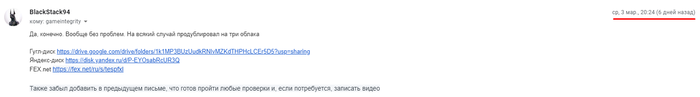 Я уточнил, что готов пройти любые проверки, и если надо, запишу видео. Но этим днем я не получил больше писем. Только лишь утром одно формальное письмо