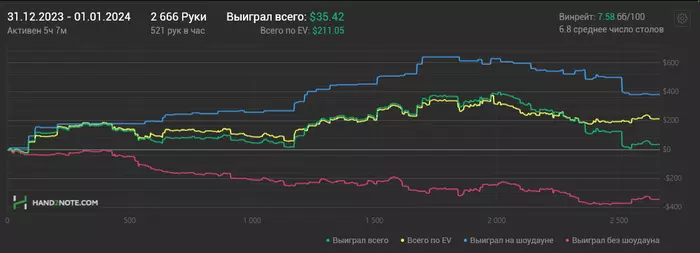 01/01/2024: 5.07ч, 2666 рук nl100 +$220.