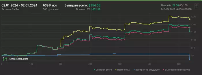 03/01/2024: 1.08ч, 639 рук nl100 +$150.