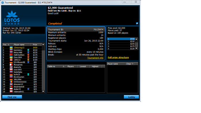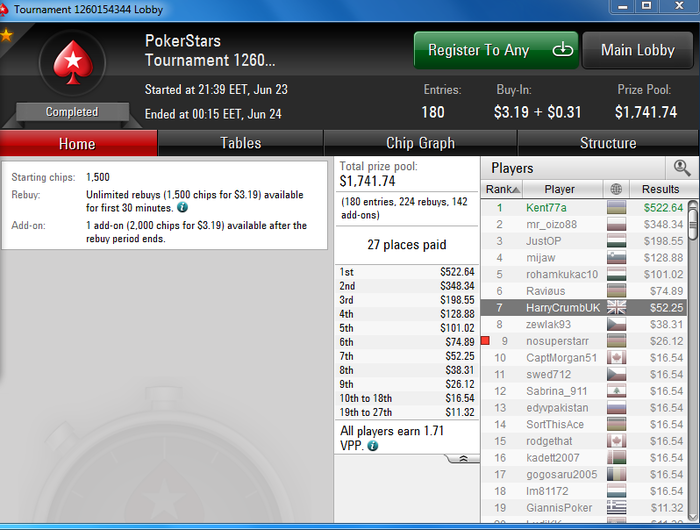 http://www.pokerstarsonline.com/poker/tournaments/leader-board/В этом турнире Вы также получили награду в размере USD 318,55 за то, что выбили других игроков. Вы получили награды за то, что выбили следующих игроков: rafarpm33, hunter_az533, ajaxxx86, Blackadd3r