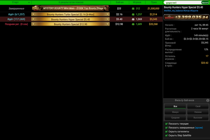 2)Как я понимаю в учет нокаут серии идут турниры которые стартуют в 6:00 по Киеву до 5:59 следующего дня