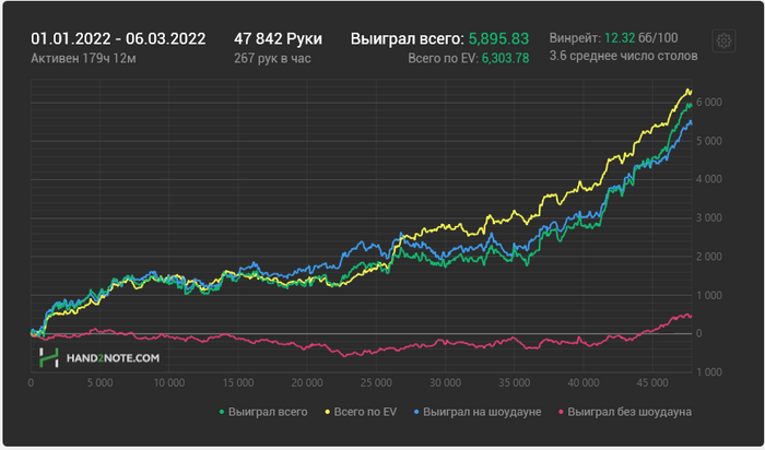 Но какой никакой результат. И играл в целом заебись) Вот винрейтики сессии какие вышли) В целом в этом месяце у меня пока 20 ЕВ ББ, но рук немного, тысяч 15.