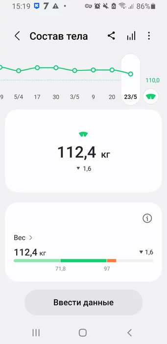 Все почти четыре месяца вес колебался между 114 и 115 кг, сегодня так вышло, наверное потому что прилично голодный был. Короче говоря не просто сбрасывать. Чем больше сбрасываешь тем дальше сложнее. В ссылке что выше мои рост, начальный вес - ну чтобы было понятно откуда всё начиналось.