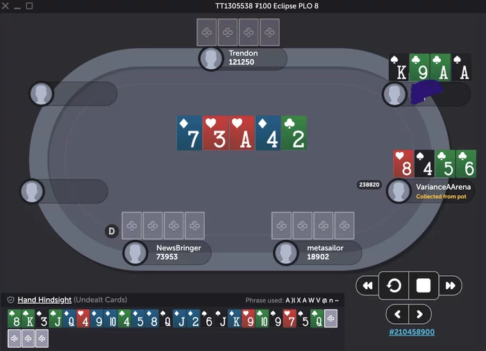 В последней раздаче (ниже) с третьим стеком трибетнул чипака, он колл, на флопе запихнулись