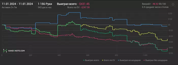 12/01/2024: 2.07ч, 1156 рук nl100 -$438.