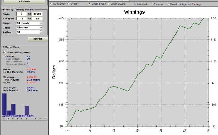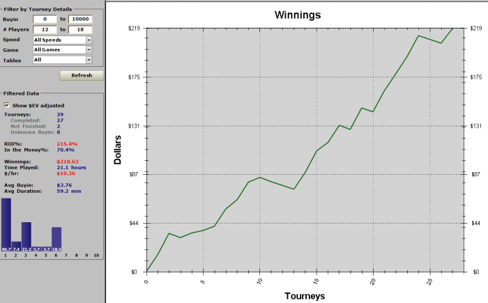 Но я думаю, что основной профит в МТТ дают контбеты 1бб и вообще индивидуальный сайзинг, короче, экономия фишек везде, где только можно, чтобы получить перевес по стеку. А с большим стеком решает умение играть с большим стеком, которое у меня прокачано еще со времен моих МТТ ВОДов, в которых я много рассказывал о том, как занять первое место на финалке, если у тебя большой стек )