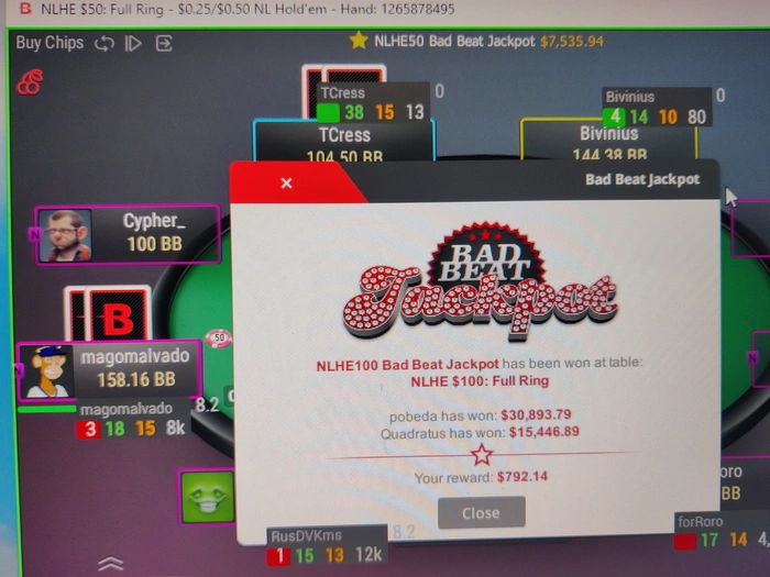 Немного обидно, блин. Играл 7 столиков nl100 из 8, джек упал именно за восьмым столом, ёщё и сессия сами видите какая, это даунстрик, однозначно 🤣