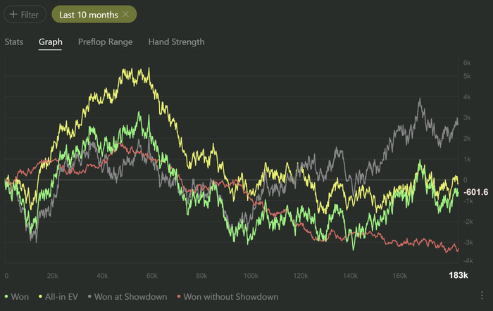 По покеру — в декабре снова включили недобор, и "вы бы знали, как мне раздают". Но это не первый сложный месяц, я вообще активно отыграл весь год — последний раз такое было в 2012-м.