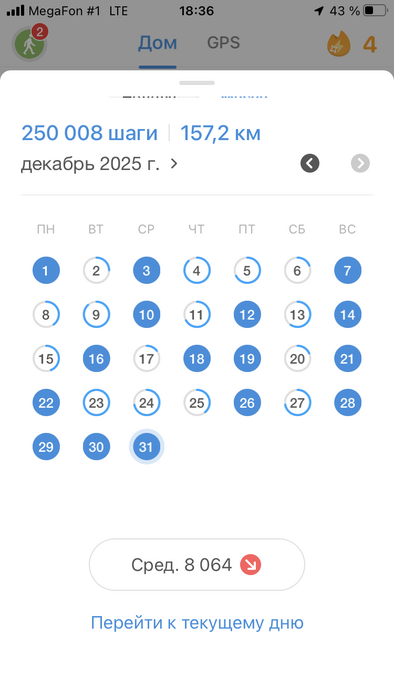 Пришлось очень сильно постараться в последние 3 дня. Причем тяжелее дался именно 31й. Ходил ради шагов последние 3к