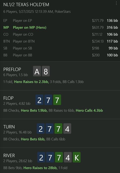 Я вообще относительно поля ставлю достаточно мало на риверах со всеми руками, чтобы лучше размазать диапазоны. В конкретных раздачах иногда выходит недобор, но в целом думаю норм.