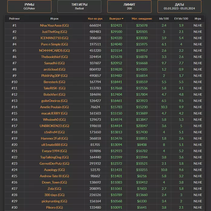 HuanXIV, ты явно не понимаешь о чем говоришь. На PokerOK не возможно играть в плюс годами, мне при среднем вин рейте 4,5бб/100 в течении полугода пришло два предупреждения за бамхант, ну дальше бан с конфискацией и все.