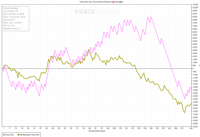 SB: 27.5 BB (VPIP: 53.33, PFR: 23.62, 3Bet Preflop: 15.79, Hands: 140)