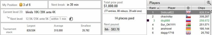 ужасно играл последний час в 109. а потом защли КК и сделал еще два нока. стек 100бб средний 60 приз в акции вырос до 5$ уже но надо попасть в итм еще) и еще можно поставить плюс