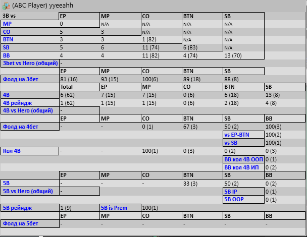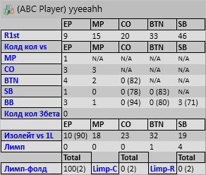 У меня вообще доход до ШД за последние 60к 17Фолды на рейзы кбета и чек/рейз по 70+ И фолды после пропущенного кбета около 70) Тот ещё нитяра)Так что мне кажется,что у меня наоборот слишком много кнопки Фолд)