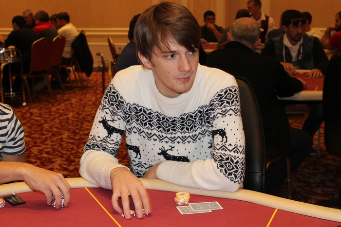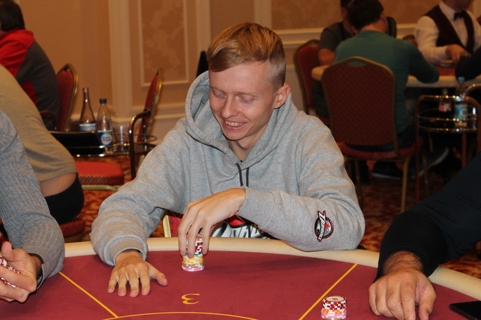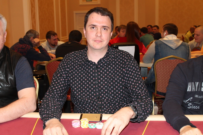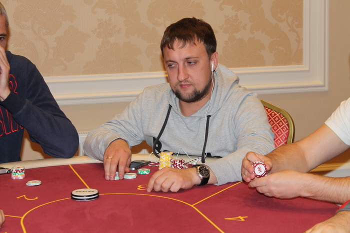 Стол №3 Алексей Недельский идет алл-ин 10,4К на , Роман Нагаев колл на , Карен Назарян колл на , флоп , на флопе Роман 15К, Карен колл, терн , Роман поставил алл-ин 86К, Карен со словами "я доеду" колл, ривер Роман забирает банк 234К и становится чиплидиром турнира.