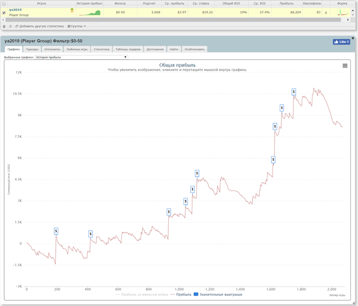 Банкролл 2.2k$, лайфролл <1k$. Уже трижды выходил на уровень 5-6-7-8k, начинал играть дороже и просаживался обратно в 2 - и сейчас вот опять.