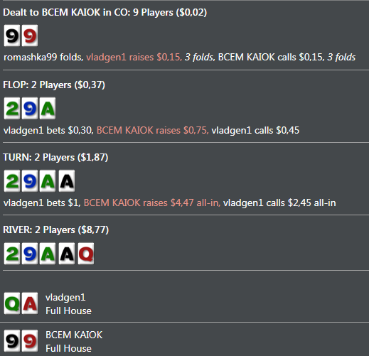 если кто подумал, замазался и отбивался, хуй там угадали, все ради дважды королями въебался в тузы, один раз дамами, в обратную сторону не было. вообщем заибало, не хватает 4 бачей до сотки, добью их на двойках сегодня завтра и кэшаут на визу, ебись оно конем все.