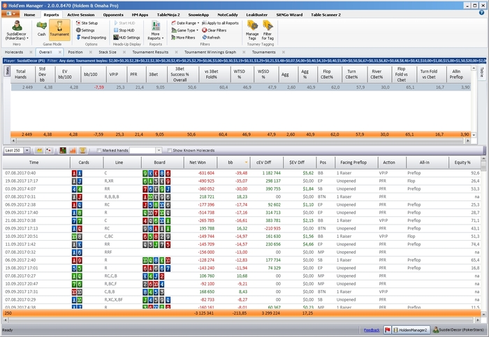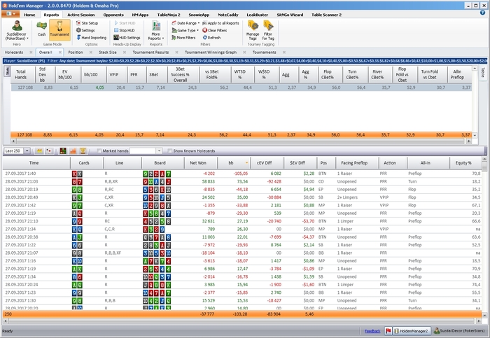 Посмотрим что из этого выйдет после марафона. На данный момент у меня 2596(чекфолдов) + 138(чекрейзов в блеф) = это около - 8 500 бб, что является примерно -310 бб/100.