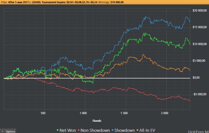 Кстати, подскажите. Я пользуюсь при игре своим HUD-ом от ХМ-а. Он довольно прост, Vpip,PFR,Steal,Fold to Steal,3bet, фолды и ставки по улицам(TOT). Теперь вопрос, мне на 7 лимите уже нужно расширять HUD? Тут на форуме кто-то выкладывал HUD полный, но у меня от него глаза разбегаются, долго буду к нему привыкать. Но нужно ли его юзать? По мне так кажется что на 7 лимите как и на 3, моего HUD-а достаточно.