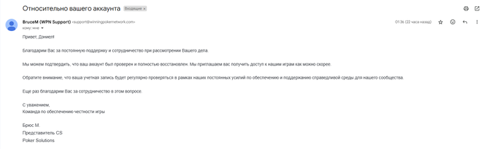ПокерКинг украсили мой сегодняшний вечер - долгожданный ответ. Каждый день проверял почту.