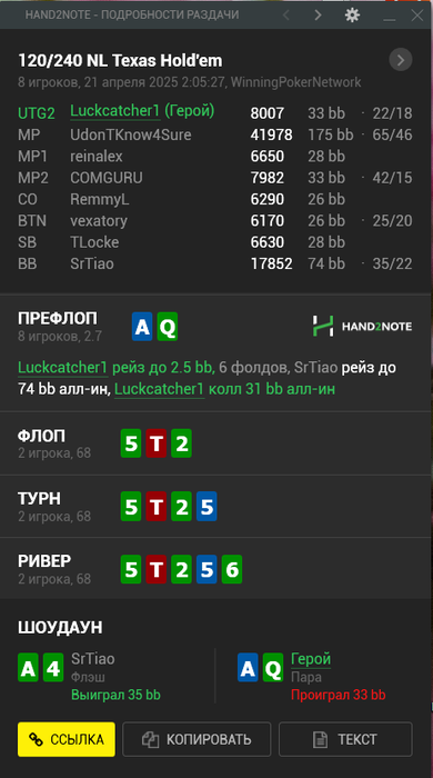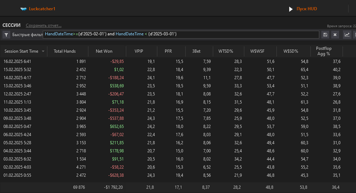 Январь-февраль - одна тенденция - весь профит что добываю на нл50, сливаю на 6макс нл100. Несмотря на всё это я не мог не открывать эти столы. Увы.