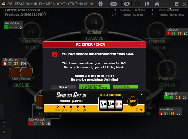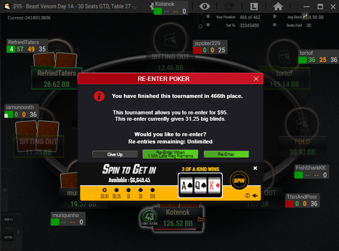 Максимальная реализация турнирных долларов. Были мысли вторые 5 турнирных баксов потратить на микро МТТ, но всё-таки склонился с спинам. И сил не отнимет, и вагон времени сэкономишь.
