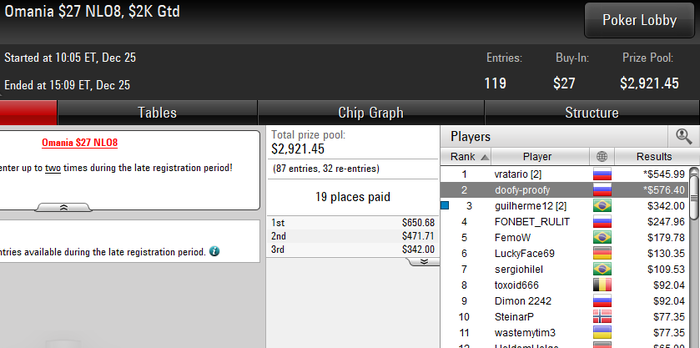 Сегодня не буду тоже выкладывать отчет. Только приехал после зачета. Завтра в этом году последний зачет и на счет зимней серии не знаю. Полюбому буду играть омаху хай лоу если не задержут в институте, но что делать с омахой по косарю ... Наверное поиграю просто саты на 1к, если не пройду скорее всего не буду играть, а может лудану)) Посмотрим.