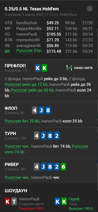 Так что ставим терн, и вельюбетим ривер, если получаем кол на терне. Я думаю такой опп, без вальта бубей (он на столе) почти всегда пушнет/ зарейзит терн.