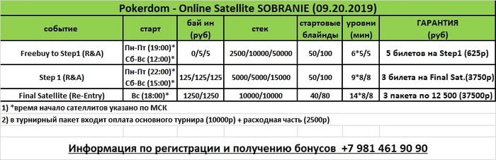 Ну и конечно же хотелось напомнить, что на POKERDOM проходят онлайн сателлиты. Полное расписание сателлитов по спойлером: