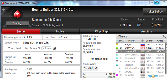 Отыграл сегодня турниров: 22