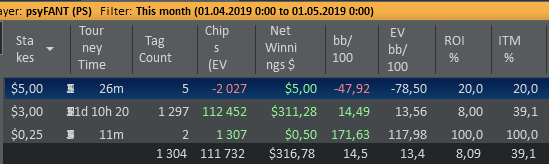 Пытаюсь выявить закономерность между изменениями банкролла и настроения (в настроение я включаю вкус жизни, самооценка, желание развиваться, самочувствие), проведу тщательный анализ с графиками и выложу результаты, это может помочь подняться хотя бы на один лимит (чего решительно не было за последние 10 лет).. Да, долгосрочный подъём на лимит меня интересует больше всего!! Как ни странно, этот интерес появляется в самых нижних точках графика самооценки и банкролла..