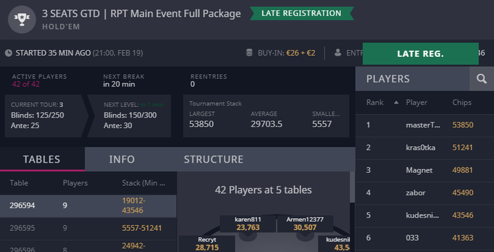 Подробнее на сегодня: 11:00 МСК - Фриролл к RPT Main Event Full Package (20 билетов гарантированно).