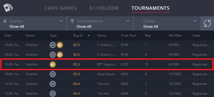PokerStyleEvents, "21:00 МСК - Финальный сателлит RPT Superstack Event Full Package с байином 12.5 евро | 6 мест гарантированно." Вообще-то, в клиенте написано 2 места. и призовой фонд = 1500 Е
