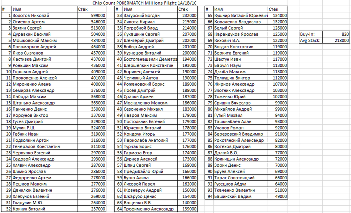 Завершилась поздняя регистрация во флайте 1С PokerMatch Millions. В нем было сделано 260 входов. В игре остается 92 спортсмена, которым предстоит продержаться еще 6 уровней.