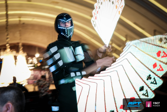 После того, как кубок дипстека отправился в Санкт-Петербург, мы переключились на Омаху и Under Pressure Knockout. Победителя омахи вы увидите уже завтра, а вот самый "сок" был, как обычно, в Under Pressure На финалку все вышли голодные и слегка уставшие, отыграв при этом уже 8 часов подряд без единого перерыва (такие условия, ну а как вы хотели)). Изрядно проголодавшаяся Вика Басистова, после формирования финального стола, вскрикнула на радостях "Кушать!!" и моментально улетела на этаж ниже заправляться. После перерыва, финалисты андерпреши погрузились в игру, и началось самое интересное В качестве разминки мы устроили игрокам световое шоу, чтобы для начала увести из внимание от покера. Но это было только начало) В ход пошли мыльные пузыри и всем было уже не до покера (миссия турнира выполнена ). Все, находящиеся в зале, превратились в маленьких детей, Вика Басистова хлопала в ладоши, а Хайям Садигов сделал наверное около 20 селфи Я даже не берусь подсчитать, какое кол-во сторизм и фоток улетело сегодня в инсту и соц. сети, свои девайсы задействовали все, находящиеся в это время в турнирной зоне.