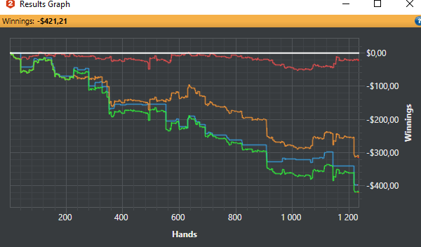 Решение продолжить грузить кэш-столы- было БОЛЬШОЙ ошибкой. Отыграв 600 рук я успел подарить 100$ в простейших спотах и закрыл столы.