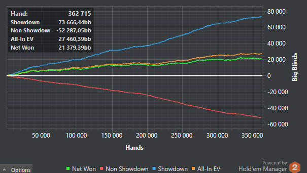 В субботу сел катать в оптимальном состоянии, но к середине сессии решил глянуть в хм и посмотреть: сколько я лечу и сколько опять недобираю по евэшке, из-за чего совершил 1 ужасную(80 бб на 25-ке=20$) и несколько средних ошибок, допустим, в сумме на 50бб 50-ки(25$)