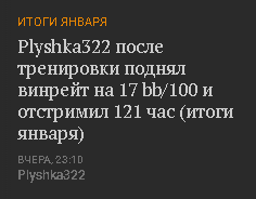 Первую половину января играл маловато, вторую уже больше. В феврале планирую играть намного больше. Важно отметить, что все время катки я паралельно стримил на твич. Пока без покера, но в целом уже привык параллельно и общаться с чатиком и принимать сложные решения. Дальше уже будет легче думаю. Все таки это первый такой месяц.