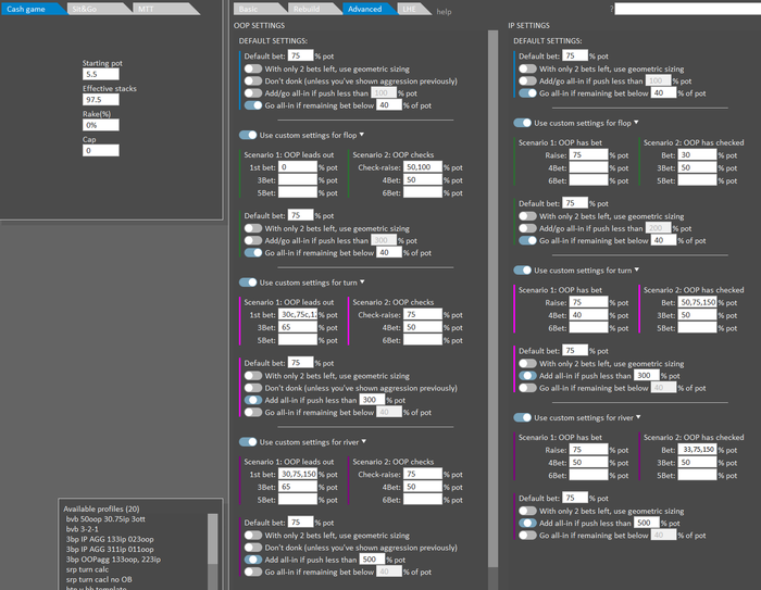 Допустим ситуация,я просчитал срп ВВ вс ВУ Флор:AJ2,теперь хочу разобрать Флоп: 689,мне опять надо запускать солвер? И каждый раз пересчитывать Флоп? Или как это грамотно сделать на разных флопах ситуация ВВвсВУ , чтобы удобно было работать.