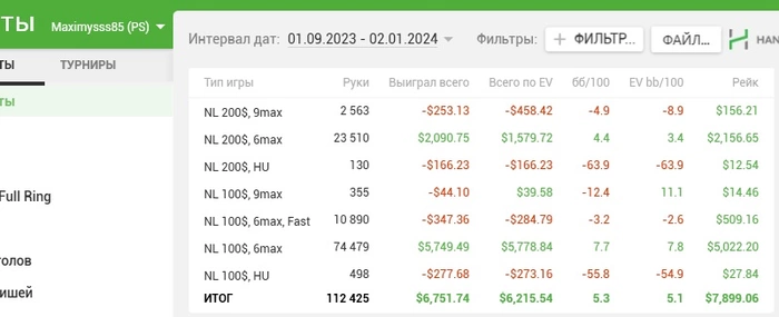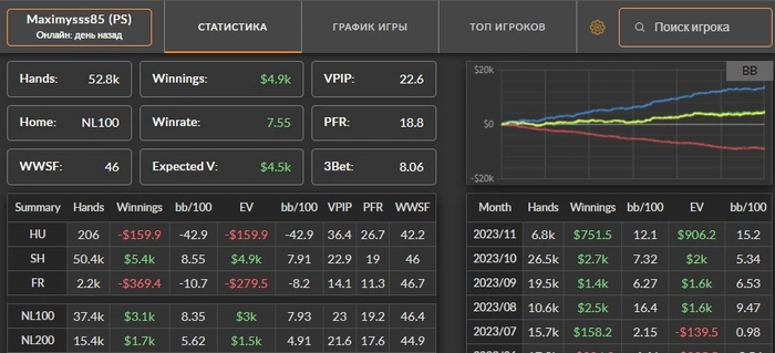 Следующие месяцы буду усиленно работать над повышением винрейта, есть крутые идеи которые планирую начать тестировать в ноябре. В целом если взять выборку за рег столами за последние 3 месяца то винрейт там выглядит вполне не плохо