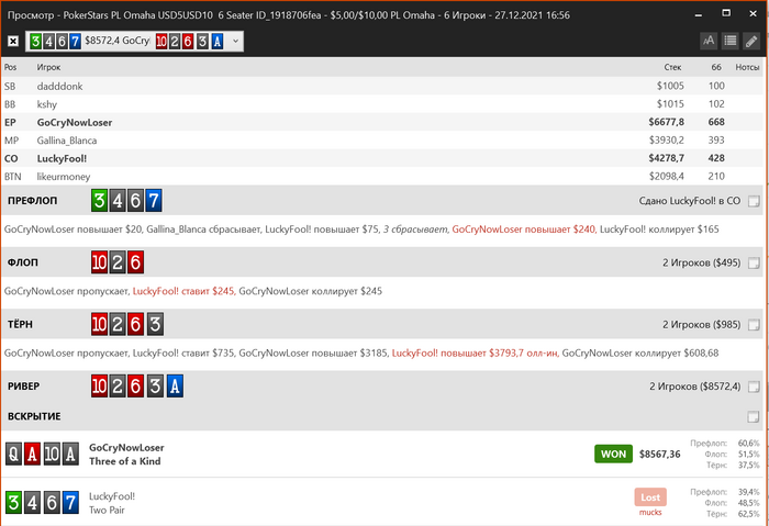 + ХМ, по какой-то причине потерял прилично рук на одном руме, но я легко могу проверить разницу по кассе и профиту, он потерял (3 370$).