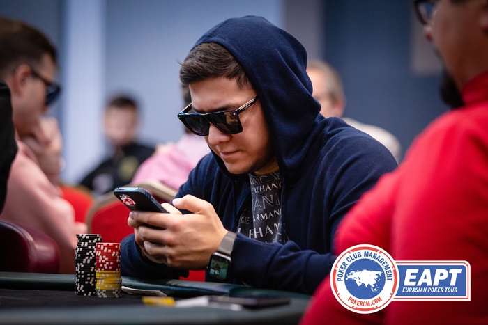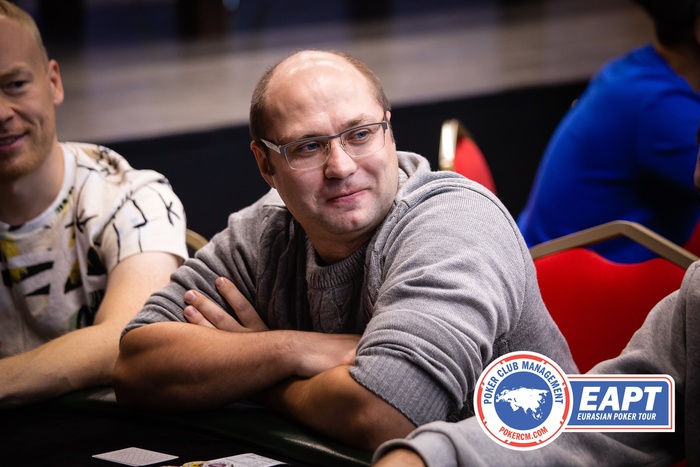 У Алексея 450 000, он с отрывом лидирует в турнире за 12 человек до денег.