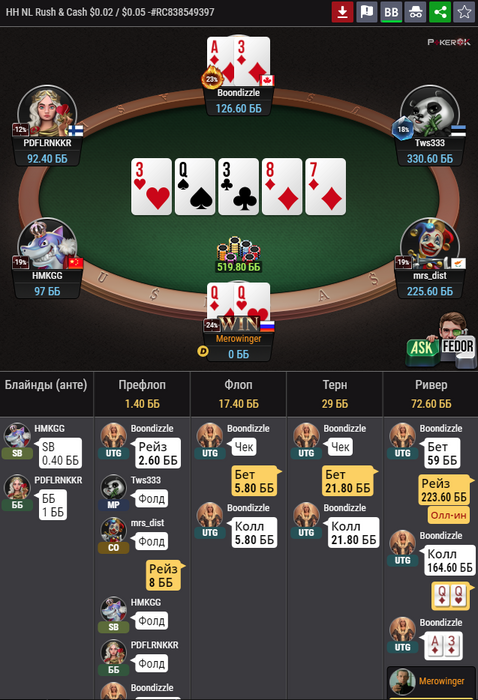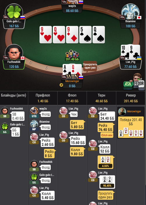 Я подозреваю, что ГГ нагло нам пиздят по статистике, откровенного хлама в 3бете очень мало, а цифры у всех зашкаливающие, видимо там свои алгоритмы подгона цифр, для увеличения экшена)