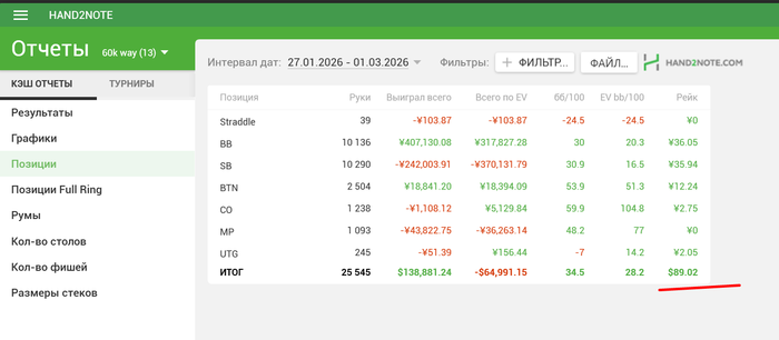 Не уверен, что график в действительности такой, во первых есть тильтовые зачем-то сессии, во вторых некоторые румы где минусовал - не трекаются. + есть подозрение что рейк не считывает х2н3, кто-то сталкивался? Раньше вот здесь отображалось более менее корректно