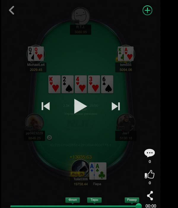 А так весело 13к бб выиграл. Извиняюсь,что в таком виде,опы на терне сделали кеш аут и она не трекнулась. Лимит нл50