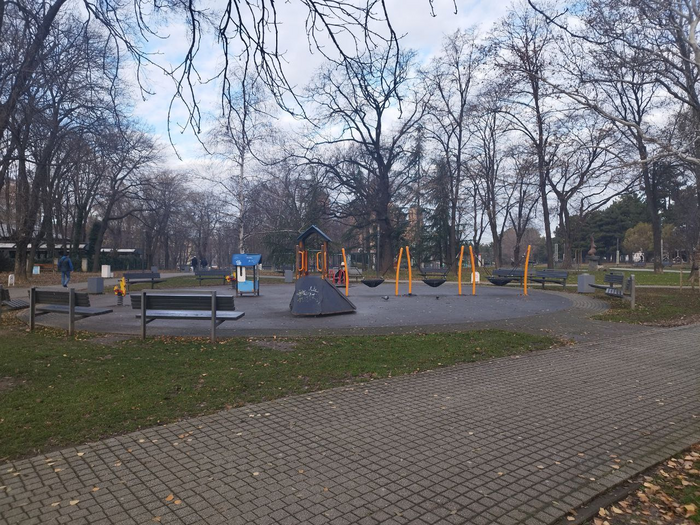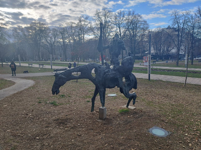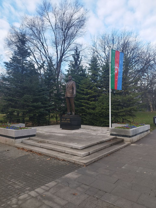 В котором неожиданно натыкаешься на памятник азербайджанского президента. Выяснилось, что на восстановление парка после войны денег подкинул именно Азербайджан, а где-то в Баку стоит памятник Тесле как ответный жест.